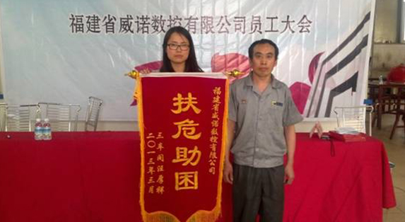 最后,通過企業(yè)幫助的員工汪厚祥因感激在他生病期間公司給予的援助之手,敬獻“扶危助困”錦旗一面,以表對威諾人的感謝!通過此舉,對4月20日雅安地震事件,公司著力積極響應全省發(fā)起的“希望工程緊急救災助學行動”捐款倡議,進行呼吁。為幫助災區(qū)同胞戰(zhàn)勝自然災害,早日重建家園貢獻我們的一份力量。