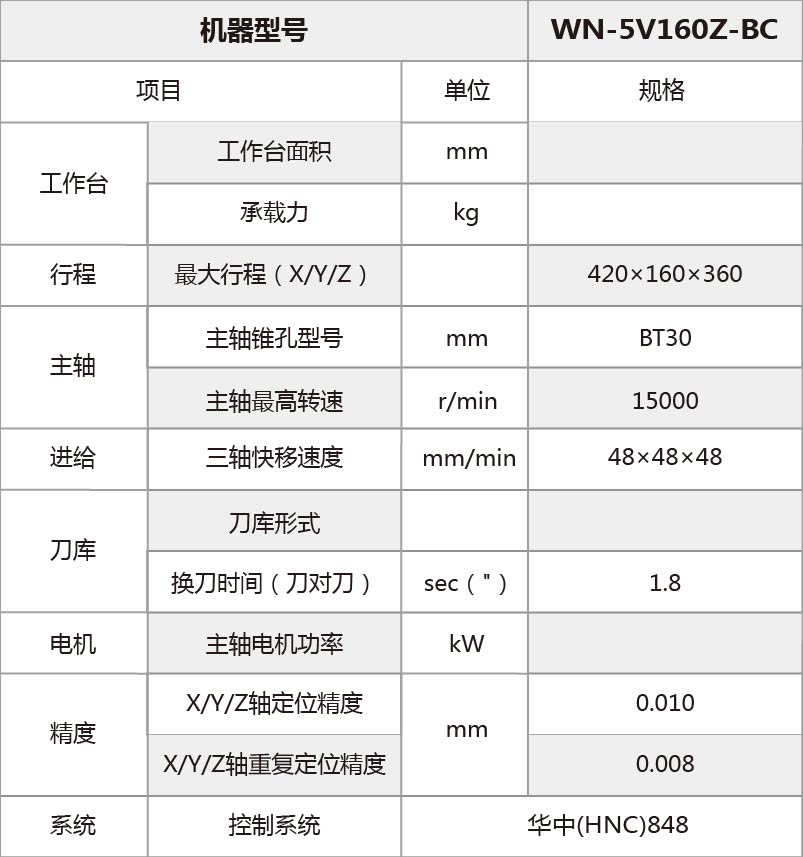 五軸聯(lián)動(dòng)立式加工中心:WN-5V160Z-BC